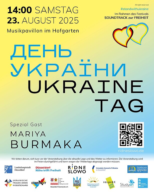 In Kooperation mit: Stadt Düsseldorf, Ridne Slowo e.V., Generalkonsulat der Ukraine in Düsseldorf, Ukrainische griechisch-katholische Kirche in Düsseldorf (UGKK), Ukrainische Frauen Union in Deutschland, Dobrosvit, Verein zur Förderung der Städtepartnerschaft Düsseldorf-Czernowitz e.V., Pro Ukraine e.V., Ukrainische Schule Ridne Slowo e.V. Düsseldorf, Respekt und Mut sowie Studyon.